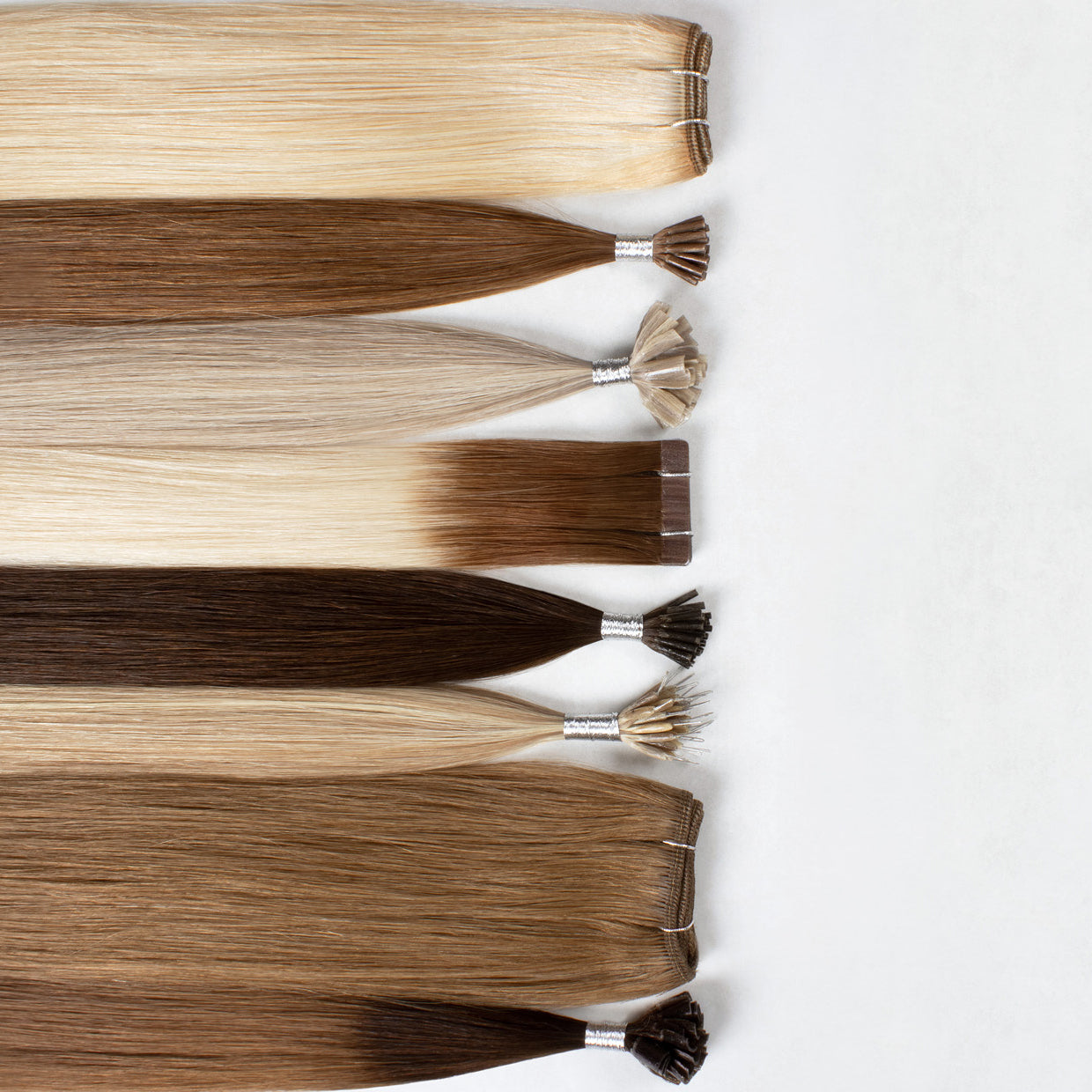 After colouring, the hair undergoes multiple rounds of drawing to achieve a high ratio of hair lengths within each extension. Our quality team conducts thorough testing to verify adherence to our standards before the hair is crafted into various application methods, each innovation tailored to perfection.