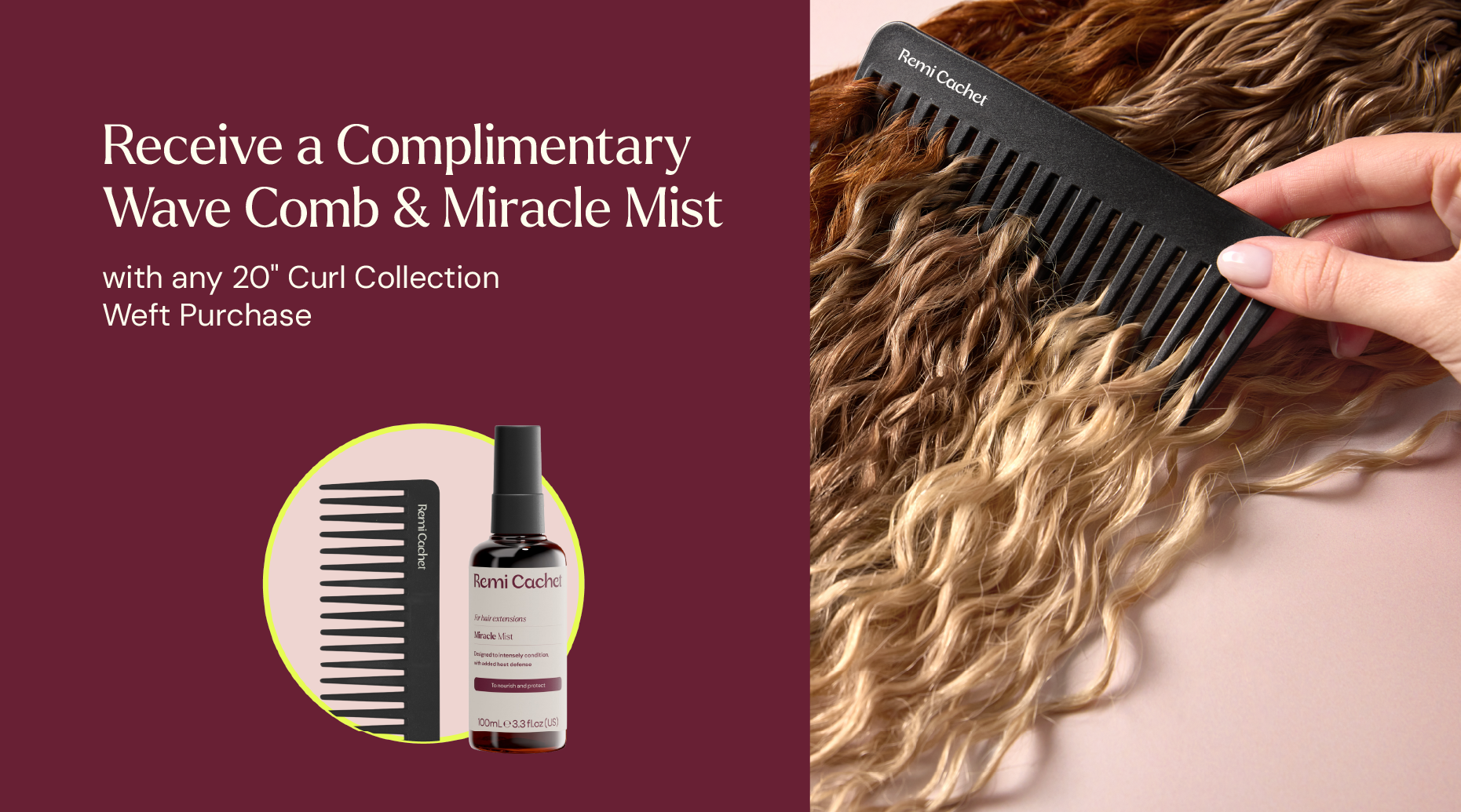 For a limited time, we're giving you a Wave Comb and Miracle Mist free with all Curl Collection Weft purchases.